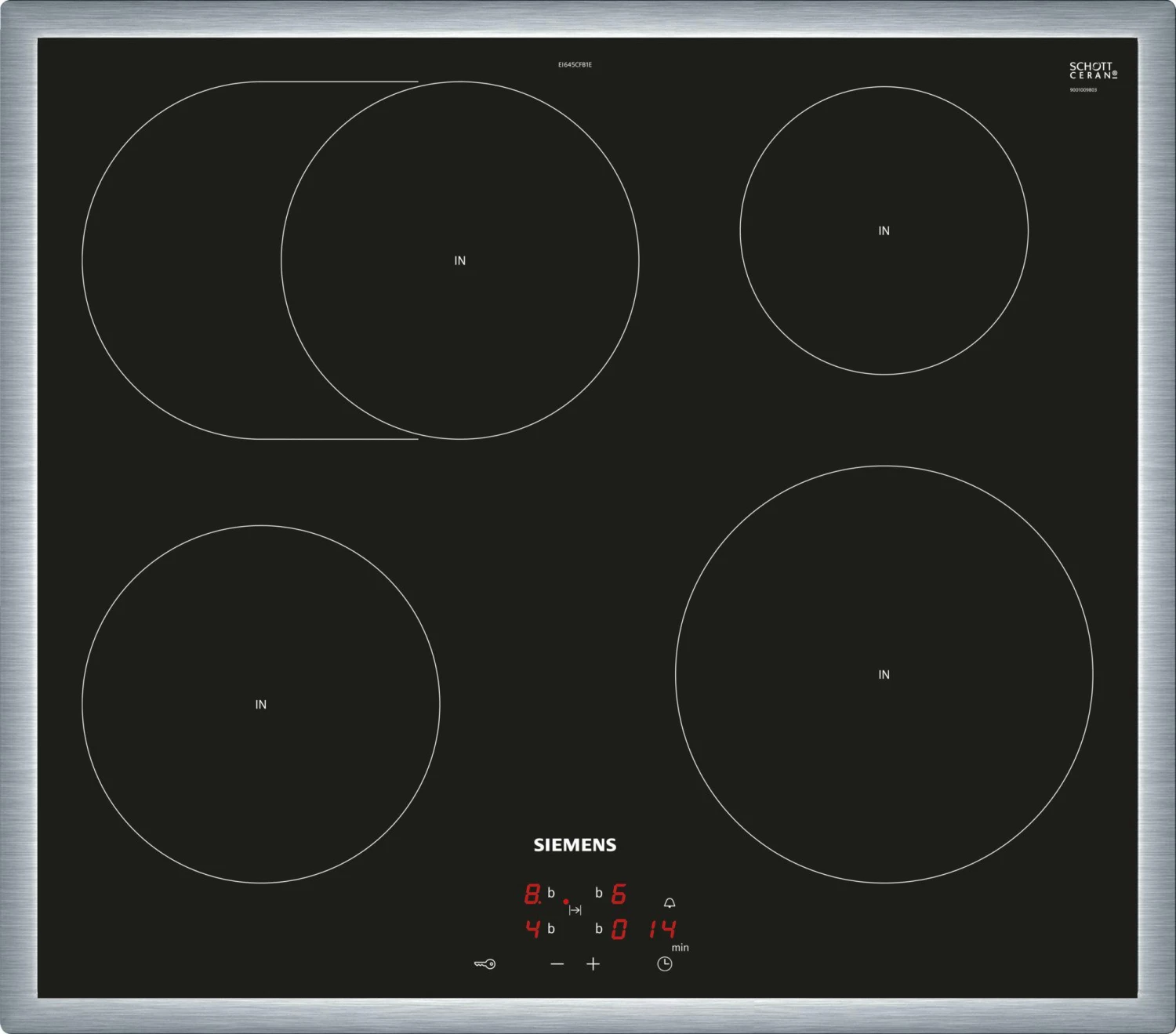 Siemens EQ521IA00. Kochfeldtyp: Zonen-Induktionskochfeld, Anzahl Herdplatten/Kochzonen: 4 Zone(n), Art der Oberfläche: Glaskeramik. Ofentyp: Elektrischer Ofen, Netto-Ofenvolumen: 71 l, Ofenfarbe: Schwarz